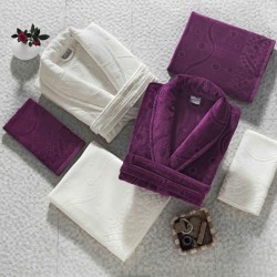 BORNOZ TAKIMI - Jakarlı Kadife Bornoz Takımı